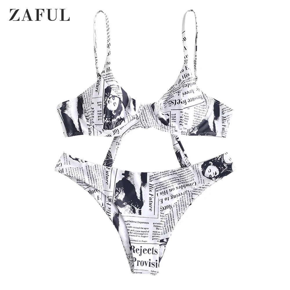 Galería of Periódico impresión nudo Bikini conjunto